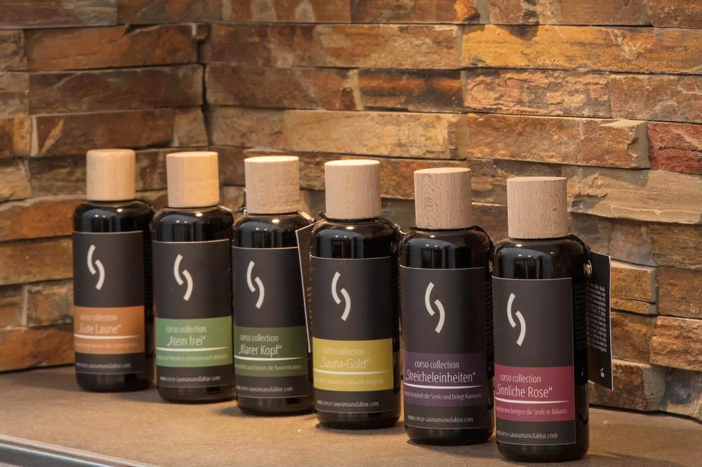 Pour compléter parfaitement le sauna, des huiles essentielles peuvent être ajoutées lors de l’infusion: du romarin à l’eucalyptus, en passant par l’orange citron, il y a un large choix de parfums agréables: qui vous rappelent une promenade dans un pré fleuri ou une promenade en forêt. Ce qui est important, c’est que les concentrés ne soient utilisés que très dilués dans l’eau d’infusion – sinon il y a un risque de fuite ou de flamme, et les muqueuses pourraient être irritées. Les huiles essentielles sont obtenues à partir d’herbes, de fleurs, de fruits ou d’épices. Idéalement, seules les huiles naturelles devraient être utilisées, car les effets sur la santé des substances synthétiques ne peuvent être exclus. Vous pouvez commander vos produits d’infusion sauna et parfums de sauna naturels directement dans le corso e-SHOP >